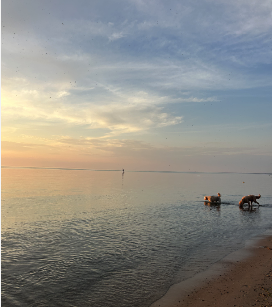 Dogs enjoying the sunset on Bruce Beach (if you zoom in you can see the bag piper playing while standing on a rock in the middle of the lake)